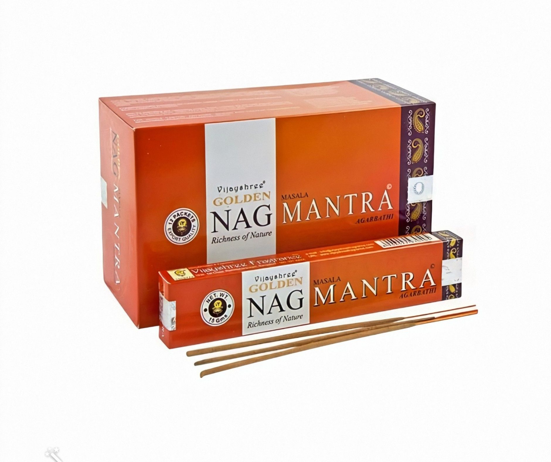 A Golden Nag Mantra füstölő a prémium minőségű, kézzel sodort indiai masala füstölők családjába tartozik. A masala füstölők természetes növényi alapanyagok, fűszerek, gyógynövények és illatos olajok gondos keverékéből készülnek, amit kézzel visznek fel a bambuszpálcákra.